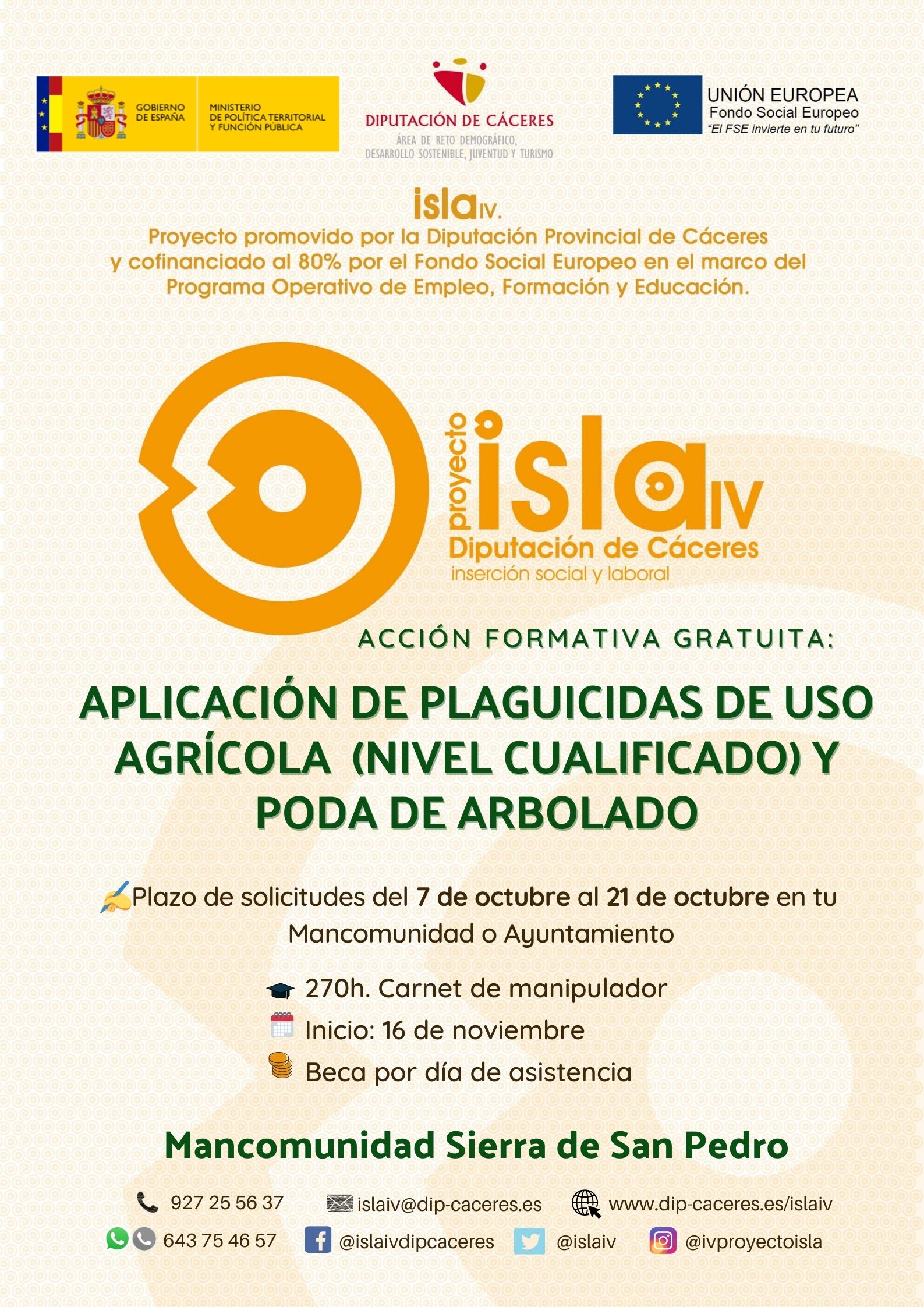 ACCIÓN FORMATIVA GRATUITA: APLICACIÓN DE PLAGUICIDAS DE USO AGRÍCOLA Y PODA DE ARBOLADO. PROYECTO ISLA IV. 06 octubre 2020