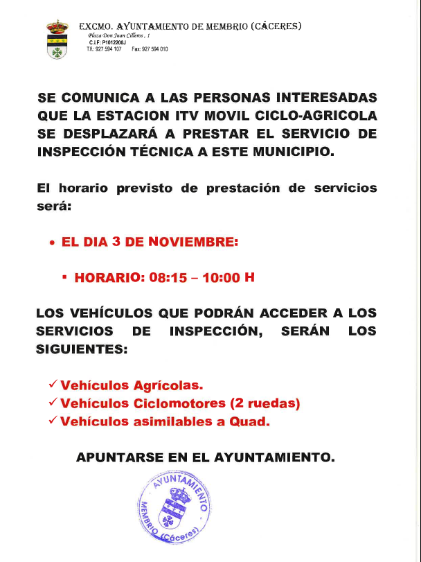 ITV MÓVIL CICLO-AGRÍCOLA_ MEMBRÍO