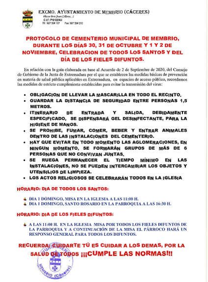 PROTOCOLO CEMENTERIO MUNICIPAL_CELEBRACIÓN DE TODOS LOS SANTOS Y DEL DÍA DE LOS FIELES DIFUNTOS 27 octubre 2020 MEDIDAS DE ESTRICTO CUMPLIMIENTO