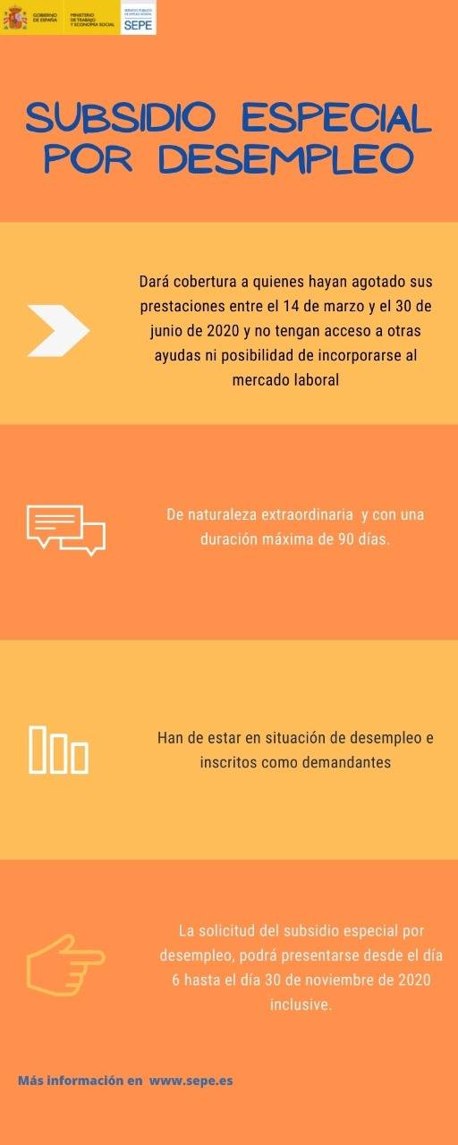 AYUDA ESPECIAL PARA DESEMPLEADOS_SEPE 13 noviembre 2020 Beneficiarios: Personas que hayan agotado su prestación por desempleo entre el 14 de marzo y el 30 de junio de 2020. Plazo para solicitar la ayuda: 30 de Noviembre de 2020.